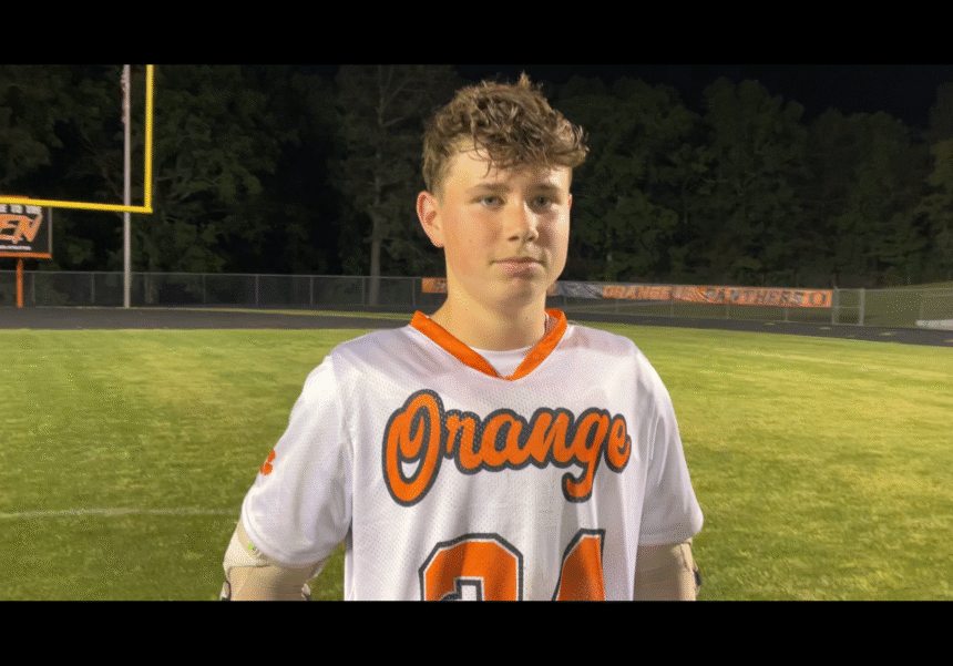 This week’s Orange Panther of the Week is sophomore lacrosse midfielder Owen Wimsatt. The younger brother of former Orange face-off ace Jake Wimsatt, Wimsatt helped the Panthers win its fifth consecutive Mid-Carolina Conference championship this season. He’s second on the team with 49 goals and 69 points. When he played at Orange Middle School, Wimsatt played as a longstick midfielder. Orange Panthers head coach Chandler Zirkle encouraged him to change to a short stick and he’s become one of Orange’s most accomplished scorers. In his varsity debut this season, Wimsatt had a hat trick in an 18-1 win over Southeast Alamance in Hillsborough. That was the first of eleven hat tricks during the regular season. On April 8, Wimsatt scored four goals in a win over Southern Alamance in Hillsborough. On March 7 against the Patriots in Graham, Wimsatt scored a season-high seven points. He had a string of three straight games with hat tricks against Williams, Cedar Ridge and Southern Alamance. Last Monday, he scored four goals as Orange defeated Cedar Ridge 4-3 to officially clinch a share of the conference title. He completed the regular season by scoring five points as the Panthers defeated Riverside 8-5 at Linny Wrenn Stadium in Durham. Orange will start play in the 3A/2A/1A State Playoffs against Carrboro at Auman Stadium in Hillsborough on Friday night.